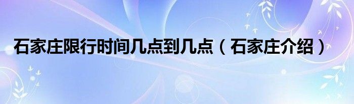大家好,伊人來為大家解答以上問題。石家莊限行時間幾點到幾點,石家莊介紹很多人還不知道,現(xiàn)在讓我們一起來看看吧!