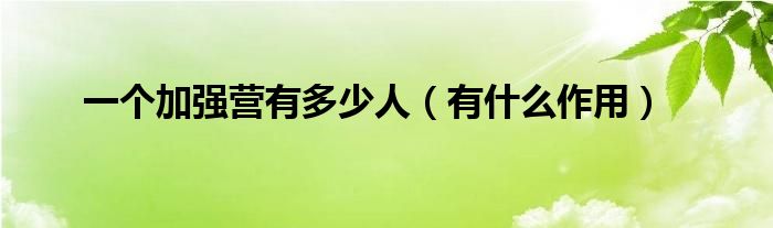 大家好,伊人來為大家解答以上問題。一個(gè)加強(qiáng)營有多少人,有什么作用很多人還不知道,現(xiàn)在讓我們一起來看看吧!