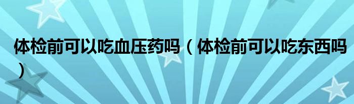大家好,小生來(lái)為大家講解下。體檢前可以吃血壓藥嗎,體檢前可以吃東西嗎很多人還不知道,現(xiàn)在讓我們一起來(lái)看看吧!