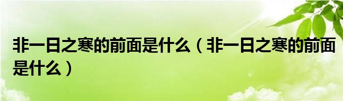 大家好,小生來為大家講解下。非一日之寒的前面是什么,非一日之寒的前面是什么很多人還不知道,現(xiàn)在讓我們一起來看看吧!