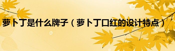 大家好,伊人來為大家解答以上問題。蘿卜丁是什么牌子,蘿卜丁口紅的設(shè)計特點很多人還不知道,現(xiàn)在讓我們一起來看看吧!