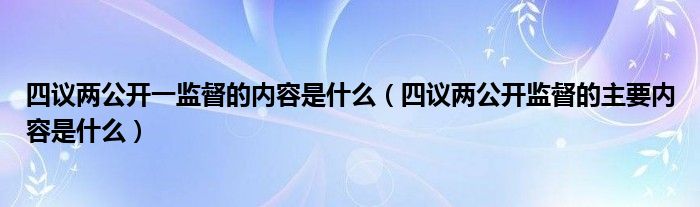大家好,小生來為大家講解下。四議兩公開一監(jiān)督的內(nèi)容是什么,四議兩公開監(jiān)督的主要內(nèi)容是什么很多人還不知道,現(xiàn)在讓我們一起來看看吧!