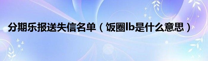 大家好,小生來為大家講解下。分期樂報送失信名單,飯圈lb是什么意思很多人還不知道,現(xiàn)在讓我們一起來看看吧!