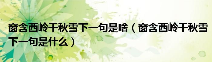 大家好,小生來為大家講解下。窗含西嶺千秋雪下一句是啥,窗含西嶺千秋雪下一句是什么很多人還不知道,現(xiàn)在讓我們一起來看看吧!