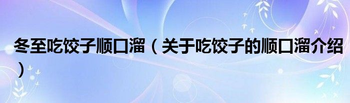 大家好,伊人來為大家解答以上問題。冬至吃餃子順口溜,關(guān)于吃餃子的順口溜介紹很多人還不知道,現(xiàn)在讓我們一起來看看吧!