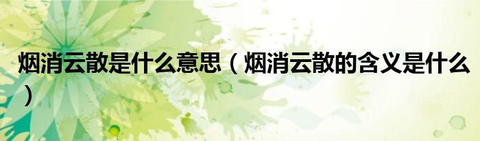 大家好,伊人來為大家解答以上問題。煙消云散是什么意思,煙消云散的含義是什么很多人還不知道,現(xiàn)在讓我們一起來看看吧!