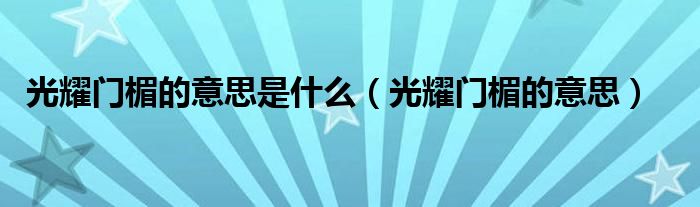 大家好,伊人來為大家解答以上問題。光耀門楣的意思是什么,光耀門楣的意思很多人還不知道,現(xiàn)在讓我們一起來看看吧!