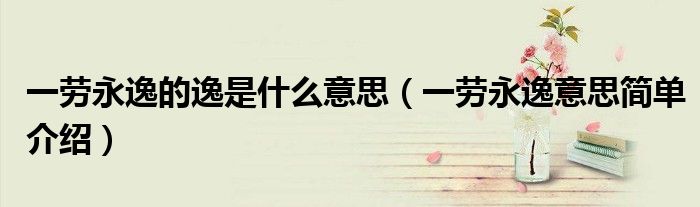 大家好,伊人來為大家解答以上問題。一勞永逸的逸是什么意思,一勞永逸意思簡單介紹很多人還不知道,現(xiàn)在讓我們一起來看看吧!