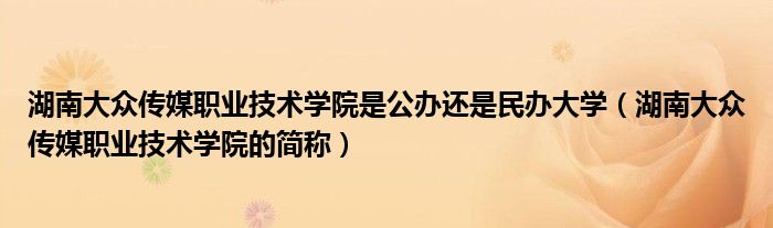 1、湖南大眾傳媒職業(yè)技術(shù)學(xué)院是一所國有大學(xué)。