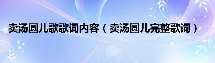 大家好,伊人來為大家解答以上問題。賣湯圓兒歌歌詞內(nèi)容,賣湯圓兒完整歌詞很多人還不知道,現(xiàn)在讓我們一起來看看吧!