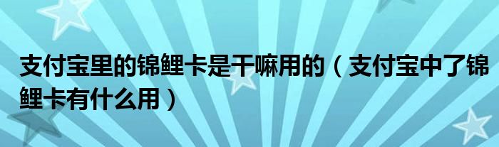 大家好,小生來為大家講解下。支付寶里的錦鯉卡是干嘛用的,支付寶中了錦鯉卡有什么用很多人還不知道,現(xiàn)在讓我們一起來看看吧!