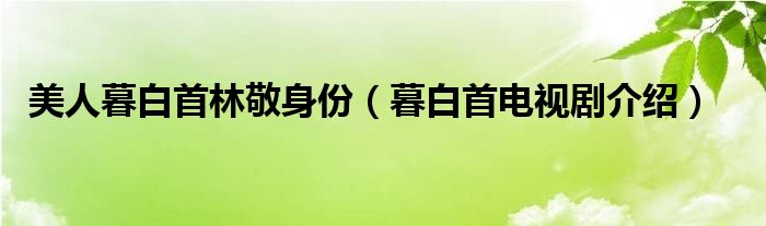 大家好,伊人來為大家解答以上問題。美人暮白首林敬身份,暮白首電視劇介紹很多人還不知道,現(xiàn)在讓我們一起來看看吧!