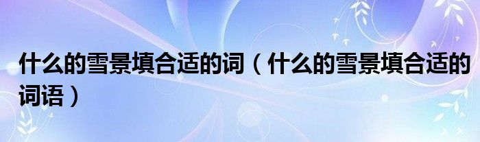 大家好,小生來為大家講解下。什么的雪景填合適的詞,什么的雪景填合適的詞語很多人還不知道,現(xiàn)在讓我們一起來看看吧!