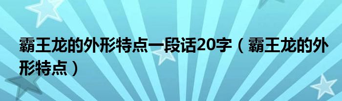 大家好,小生來(lái)為大家講解下。霸王龍的外形特點(diǎn)一段話20字,霸王龍的外形特點(diǎn)很多人還不知道,現(xiàn)在讓我們一起來(lái)看看吧!