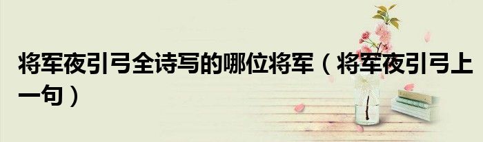 大家好,小生來(lái)為大家講解下。將軍夜引弓全詩(shī)寫(xiě)的哪位將軍,將軍夜引弓上一句很多人還不知道,現(xiàn)在讓我們一起來(lái)看看吧!