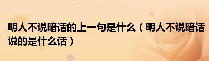 大家好,小生來為大家講解下。明人不說暗話的上一句是什么,明人不說暗話說的是什么話很多人還不知道,現(xiàn)在讓我們一起來看看吧!