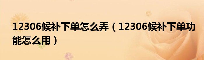大家好,小生來(lái)為大家講解下。12306候補(bǔ)下單怎么弄,12306候補(bǔ)下單功能怎么用很多人還不知道,現(xiàn)在讓我們一起來(lái)看看吧!
