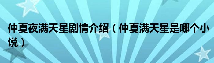 大家好,小生來為大家講解下。仲夏夜?jié)M天星劇情介紹,仲夏滿天星是哪個(gè)小說很多人還不知道,現(xiàn)在讓我們一起來看看吧!