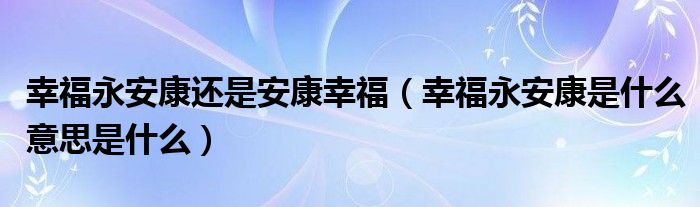 大家好,小生來為大家講解下。幸福永安康還是安康幸福,幸福永安康是什么意思是什么很多人還不知道,現(xiàn)在讓我們一起來看看吧!