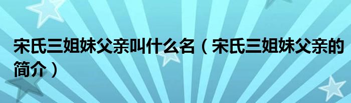1、三姐妹的父親是宋耀如。