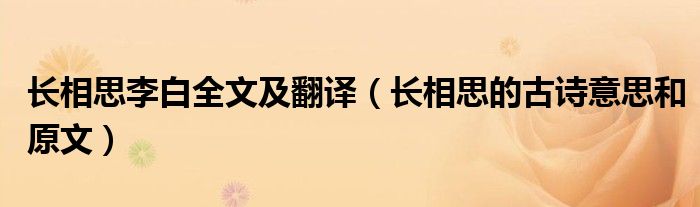 大家好,伊人來為大家解答以上問題。長相思李白全文及翻譯,長相思的古詩意思和原文很多人還不知道,現(xiàn)在讓我們一起來看看吧!