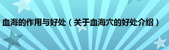 大家好,伊人來為大家解答以上問題。血海的作用與好處,關(guān)于血海穴的好處介紹很多人還不知道,現(xiàn)在讓我們一起來看看吧!