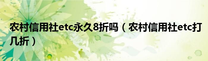 大家好,小生來(lái)為大家講解下。農(nóng)村信用社etc永久8折嗎,農(nóng)村信用社etc打幾折很多人還不知道,現(xiàn)在讓我們一起來(lái)看看吧!
