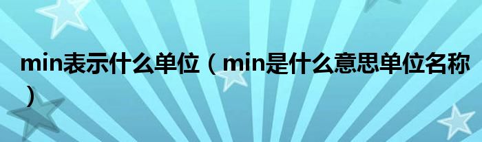 大家好,小生來為大家講解下。min表示什么單位,min是什么意思單位名稱很多人還不知道,現(xiàn)在讓我們一起來看看吧!