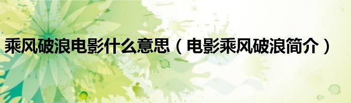 1、乘風(fēng)破浪電影指:電影《乘風(fēng)破浪》。