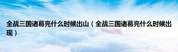 大家好,小生來為大家講解下。全戰(zhàn)三國諸葛亮什么時候出山,全戰(zhàn)三國諸葛亮什么時候出現(xiàn)很多人還不知道,現(xiàn)在讓我們一起來看看吧!