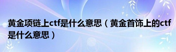 大家好,小生來為大家講解下。黃金項鏈上ctf是什么意思,黃金首飾上的ctf是什么意思很多人還不知道,現(xiàn)在讓我們一起來看看吧!