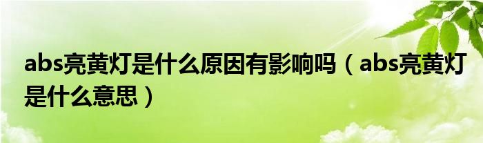 大家好,小生來為大家講解下。abs亮黃燈是什么原因有影響嗎,abs亮黃燈是什么意思很多人還不知道,現(xiàn)在讓我們一起來看看吧!