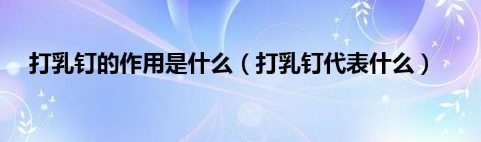 大家好,小生來為大家講解下。打乳釘?shù)淖饔檬鞘裁矗蛉獒敶硎裁春芏嗳诉€不知道,現(xiàn)在讓我們一起來看看吧!