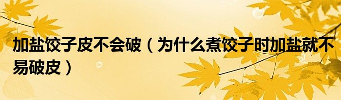 大家好,小生來為大家講解下。加鹽餃子皮不會破,為什么煮餃子時加鹽就不易破皮很多人還不知道,現(xiàn)在讓我們一起來看看吧!