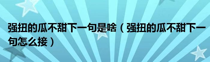大家好,小生來為大家講解下。強(qiáng)扭的瓜不甜下一句是啥,強(qiáng)扭的瓜不甜下一句怎么接很多人還不知道,現(xiàn)在讓我們一起來看看吧!