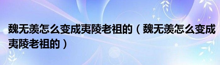 大家好,小生來為大家講解下。魏無羨怎么變成夷陵老祖的,魏無羨怎么變成夷陵老祖的很多人還不知道,現(xiàn)在讓我們一起來看看吧!