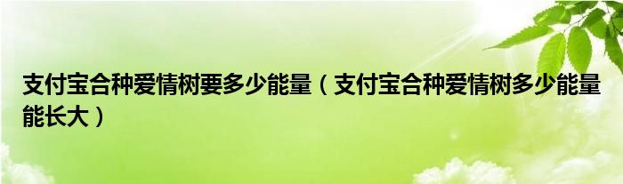 大家好,小生來(lái)為大家講解下。支付寶合種愛情樹要多少能量,支付寶合種愛情樹多少能量能長(zhǎng)大很多人還不知道,現(xiàn)在讓我們一起來(lái)看看吧!