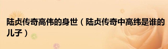 大家好,小生來(lái)為大家講解下。陸貞傳奇高偉的身世,陸貞傳奇中高緯是誰(shuí)的兒子很多人還不知道,現(xiàn)在讓我們一起來(lái)看看吧!