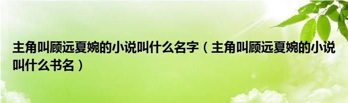 大家好,伊人來為大家解答以上問題。主角叫顧遠夏婉的小說叫什么名字,主角叫顧遠夏婉的小說叫什么書名很多人還不知道,現(xiàn)在讓我們一起來看看吧!