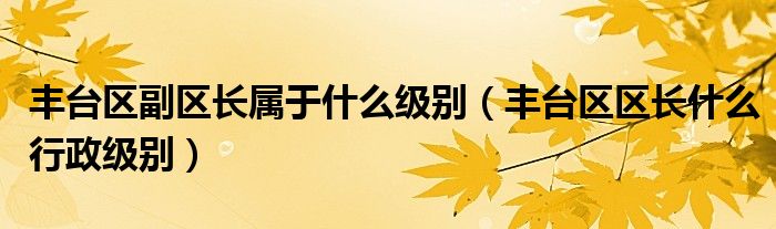 大家好,小生來為大家講解下。豐臺(tái)區(qū)副區(qū)長(zhǎng)屬于什么級(jí)別,豐臺(tái)區(qū)區(qū)長(zhǎng)什么行政級(jí)別很多人還不知道,現(xiàn)在讓我們一起來看看吧!
