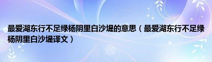 大家好,伊人來(lái)為大家解答以上問(wèn)題。最?lèi)?ài)湖東行不足綠楊陰里白沙堤的意思,最?lèi)?ài)湖東行不足綠楊陰里白沙堤譯文很多人還不知道,現(xiàn)在讓我們一起來(lái)看看吧!