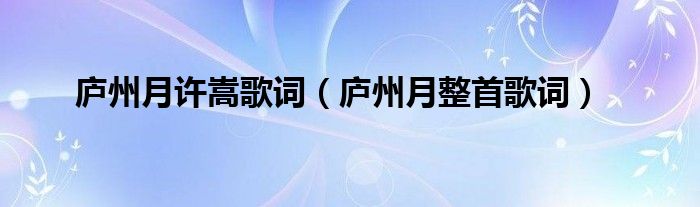 大家好,伊人來為大家解答以上問題。廬州月許嵩歌詞,廬州月整首歌詞很多人還不知道,現(xiàn)在讓我們一起來看看吧!