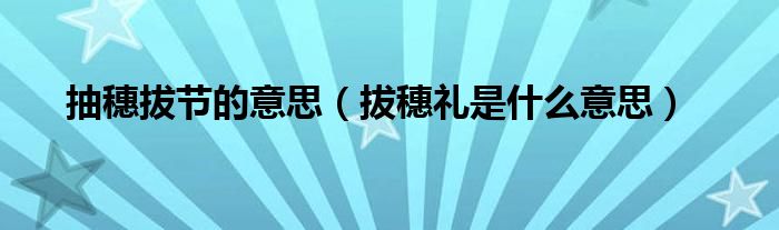 大家好,小生來為大家講解下。抽穗拔節(jié)的意思,拔穗禮是什么意思很多人還不知道,現(xiàn)在讓我們一起來看看吧!
