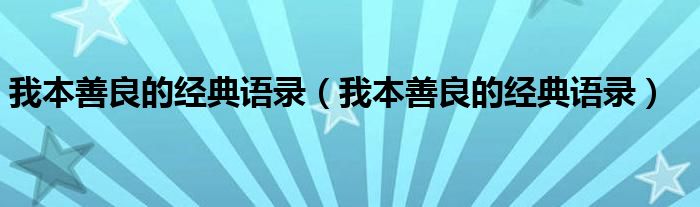 大家好,小生來為大家講解下。我本善良的經(jīng)典語錄,我本善良的經(jīng)典語錄很多人還不知道,現(xiàn)在讓我們一起來看看吧!