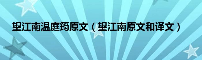 大家好,伊人來為大家解答以上問題。望江南溫庭筠原文,望江南原文和譯文很多人還不知道,現(xiàn)在讓我們一起來看看吧!