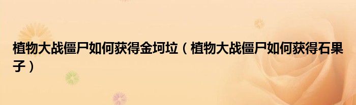 大家好,小生來為大家講解下。植物大戰(zhàn)僵尸如何獲得金坷垃,植物大戰(zhàn)僵尸如何獲得石果子很多人還不知道,現(xiàn)在讓我們一起來看看吧!
