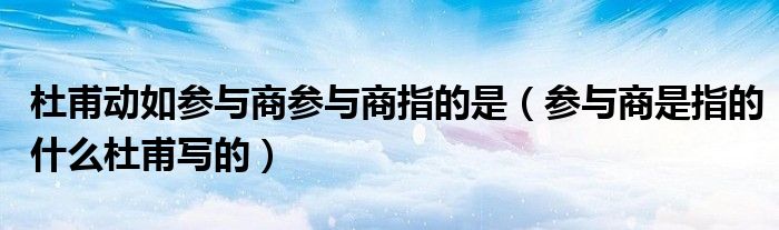 大家好,小生來為大家講解下。杜甫動(dòng)如參與商參與商指的是,參與商是指的什么杜甫寫的很多人還不知道,現(xiàn)在讓我們一起來看看吧!