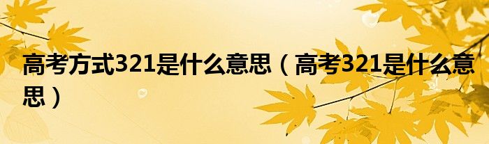 大家好,小生來為大家講解下。高考方式321是什么意思,高考321是什么意思很多人還不知道,現(xiàn)在讓我們一起來看看吧!