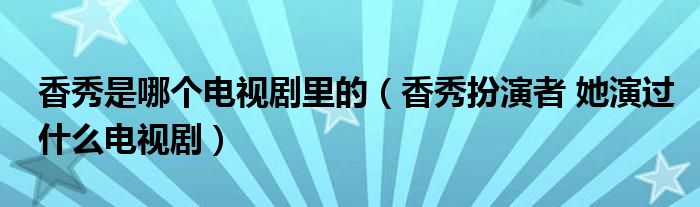 大家好,小生來為大家講解下。香秀是哪個電視劇里的,香秀扮演者 她演過什么電視劇很多人還不知道,現(xiàn)在讓我們一起來看看吧!