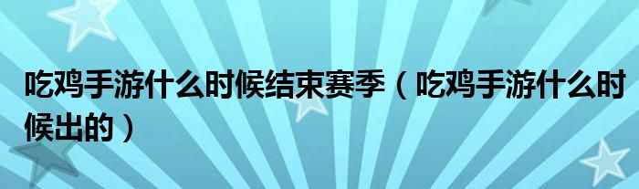 大家好,小生來為大家講解下。吃雞手游什么時候結(jié)束賽季,吃雞手游什么時候出的很多人還不知道,現(xiàn)在讓我們一起來看看吧!